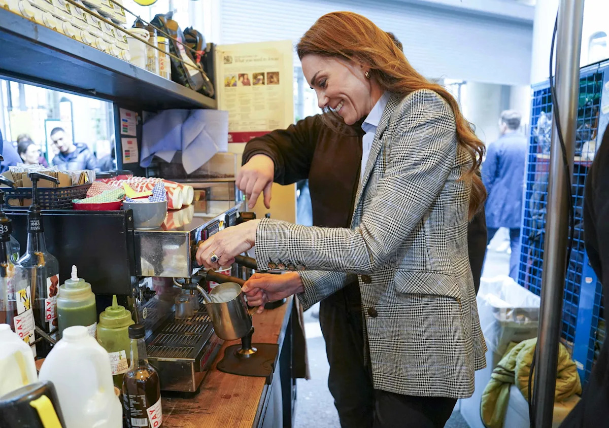 Kate Middleton está añadiendo «barista» a su currículum, comenzando con el pedido de café de su esposo. El 12 de marzo, la Princesa de Gales y el Príncipe William salieron para una visita sorpresa al mercado de alimentos Borough Market en Londres. Durante la visita, la pareja real hizo varias paradas, incluyendo una cafetería llamada Change Please, donde Kate se puso detrás del mostrador para probar su suerte como barista. «¿Necesitan convertirse en expertos en crear los diseños y formas más hermosas?», preguntó a un empleado sobre la creación de arte latte durante su visita.