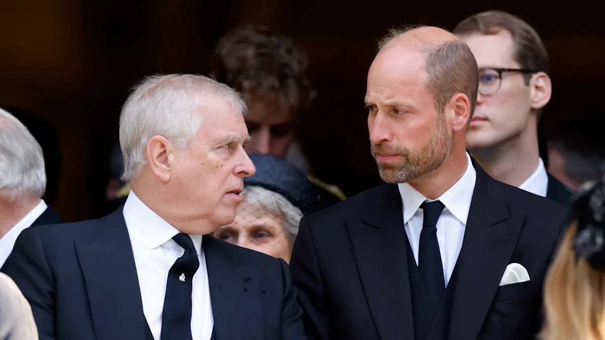 Prince Andrew and Prince William mid-conversation at the Duchess of Kent’s funeral. Max Mumby/Indigo – Getty Images