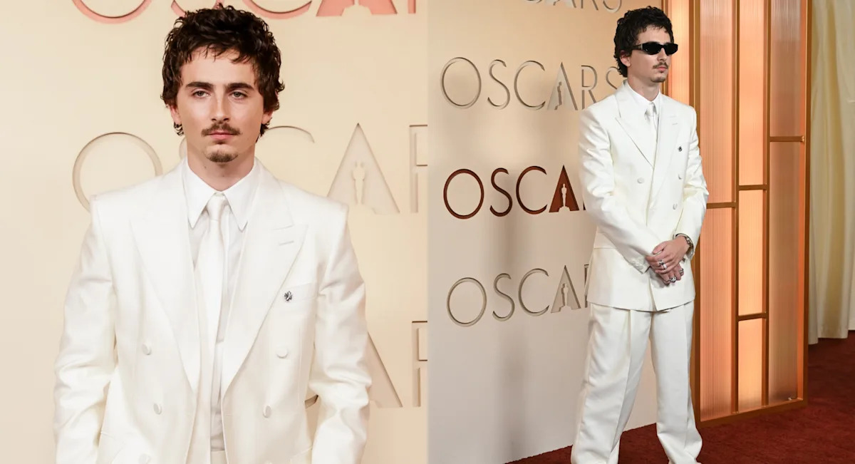 Тимоти Шаламе одеты в безупречный белый костюм Givenchy от Sarah Burton для красной ковровой дорожки на 2026-м церемонии вручения премии «Оскар» в Лос-Анджелесе в воскресенье. Актер номинирован на премию «Лучший актер» за свою роль в фильме «Марти Сурприм».