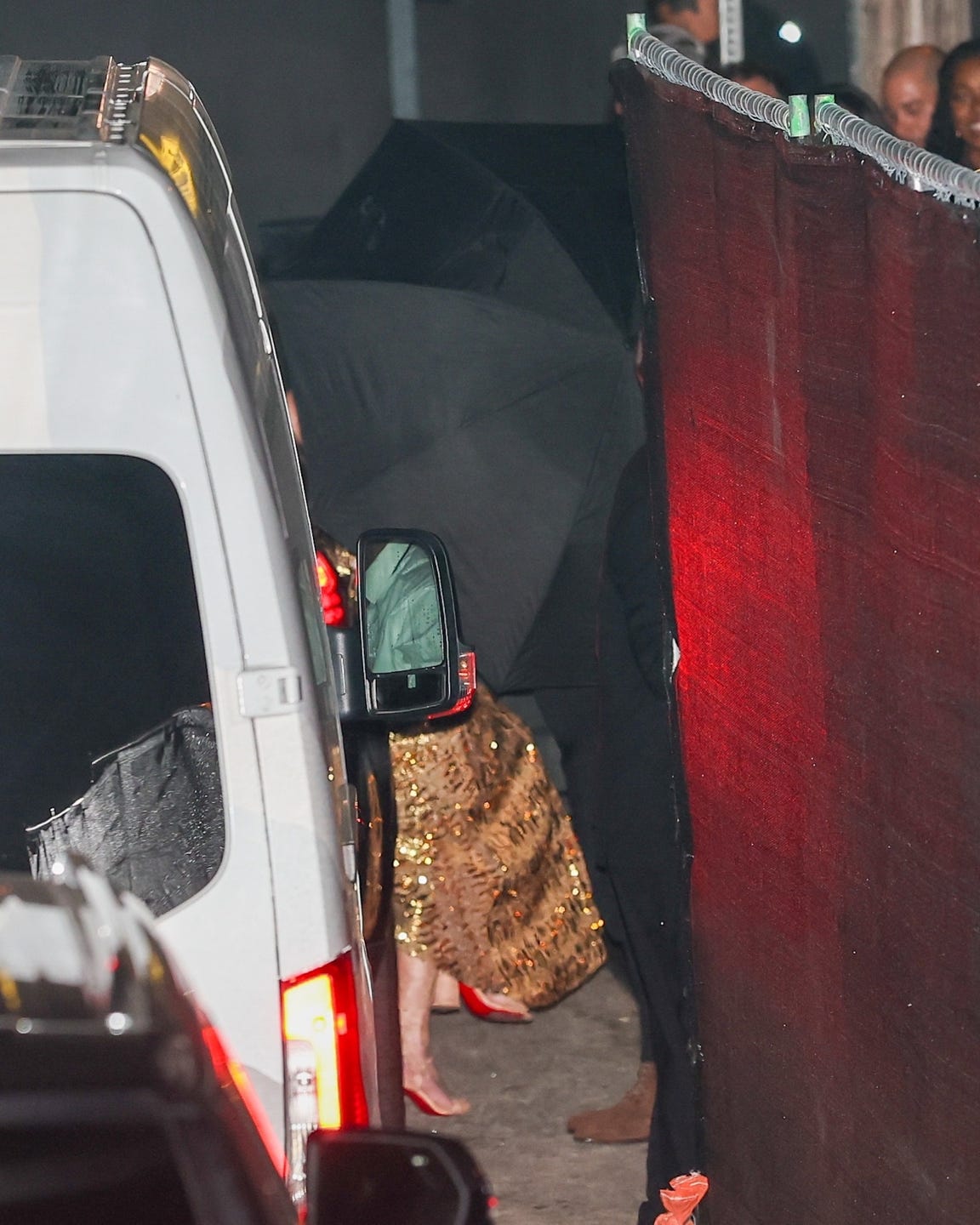 Curious about what Taylor Swift and Travis Kelce are up to? The couple have been pretty low key for the past couple of weeks, but were just spotted in Los Angeles getting in on the Oscars festivities. While these two skipped the more public celeb events of the night (like the Vanity Fair Oscars Party), they were photographed sneaking into Beyoncéand Jay-Z’s after party at the Chateau Marmont. But Taylor made sure to stay hidden under umbrellas, so just a photo of the bottom of her dress was snapped. Which, for what it’s worth, was gold and sparkly!